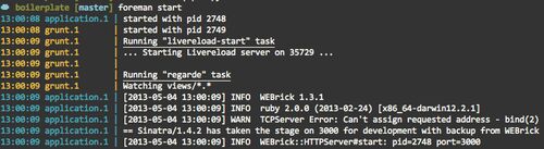 昨日の続き。こういうアプリケーションのテンプレートを管理するのに便利な仕組みはないですかねーと言っていたら @teppeis さんや @omo2009 さんに Grunt や Yeoman はどうかと教えてもらった。Grunt はユースケースとしては JavaScript の連結や圧縮、SCSS…
